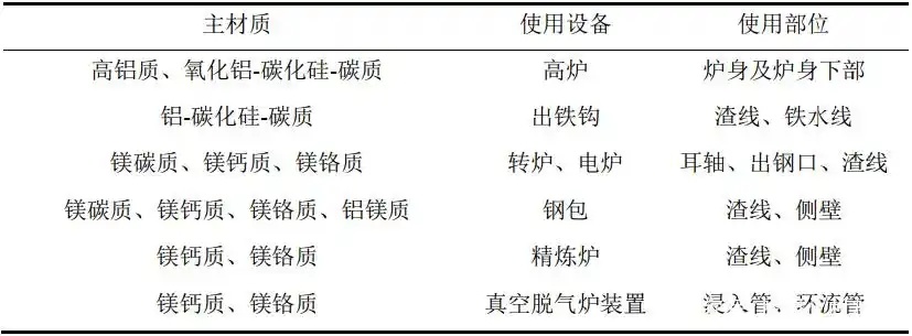 在炼钢系统中主要以镁质、镁钙质、和镁碳质为主,在炼铁体系中主要以铝硅系为主。